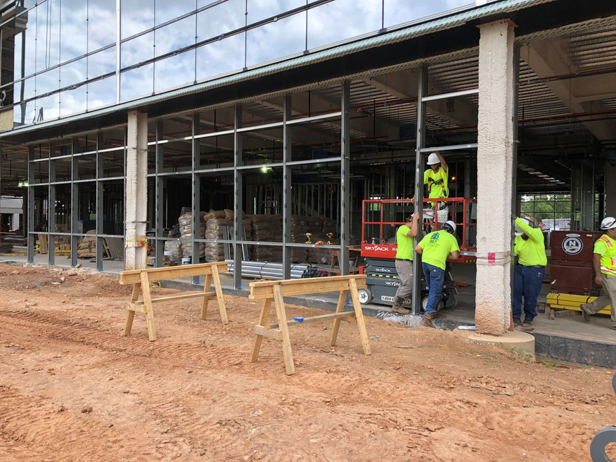 This project set the standard for the mixed-use live/work environment in Summerville, SC and sits prominently at the main entrance. The LEED Gold commercial office building is the headquarters for MWV Development operations in the Carolinas. The three stories are contrasted with a brick, and curtain wall facade. Our Team partnered with Graham-Hodge Associates, were responsible for the site management, and installation of the exterior curtain wall, entrances, and sun-control devices.